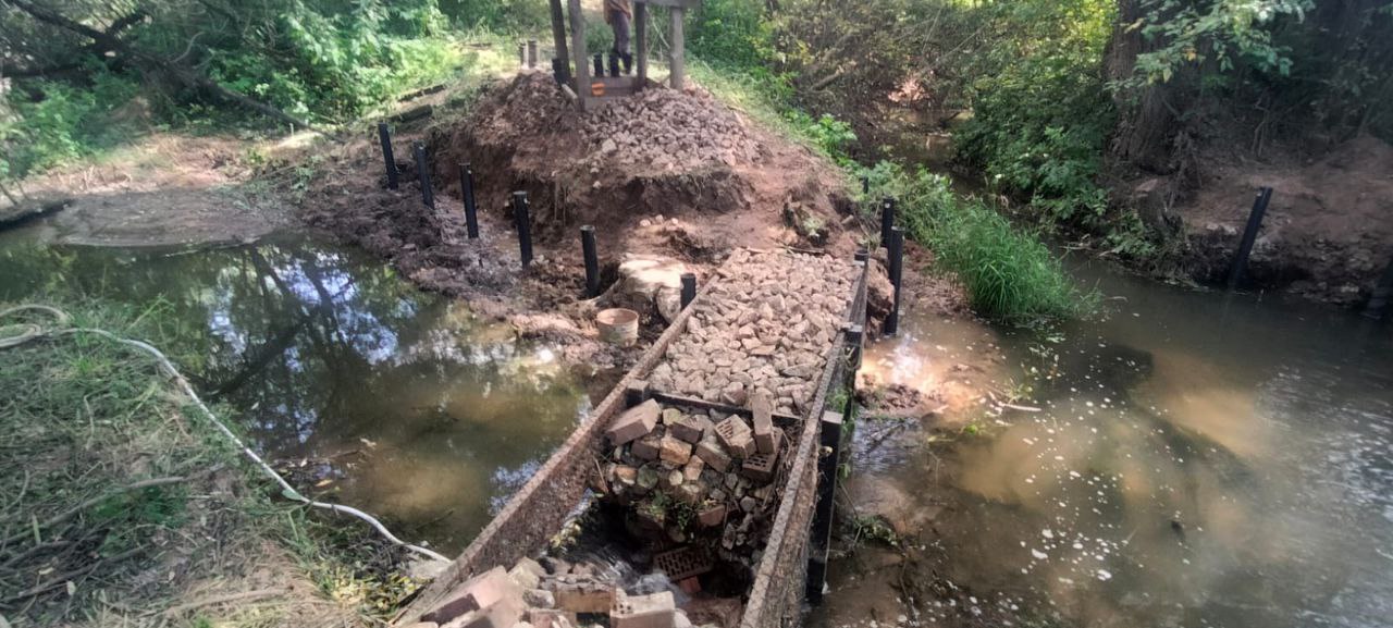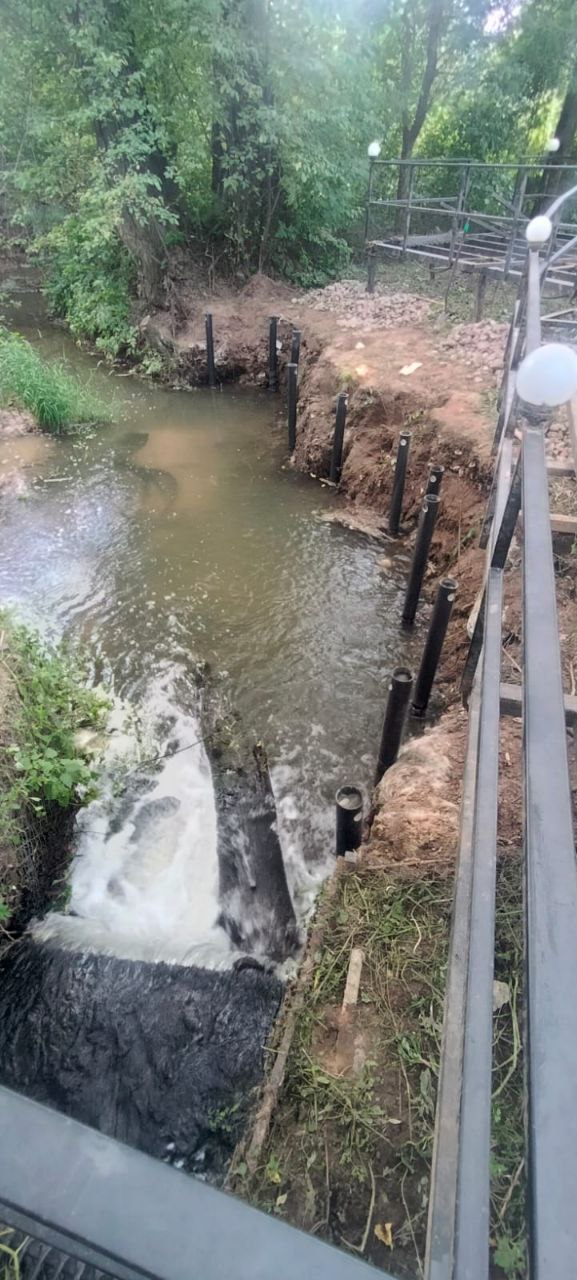 —Закрутили винтовые сваи для укрепелния берега реки